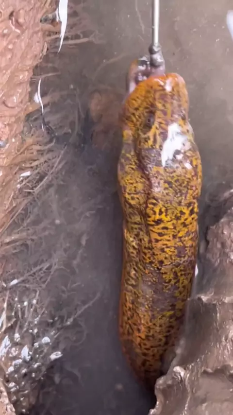 Há enguias pescando no campo de arroz, e há enguias grandes!