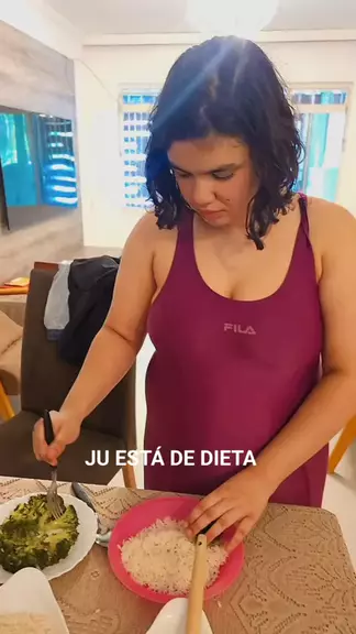 Ju está comendo menos e comendo mais saudável, eu espero que até o final do ano consigamos que ela elimine uns 6 quilos pelo menos, ela está com 84 quilos, muito acima do peso.