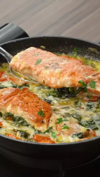 SALMÃO COM MOLHO DE ESPINAFRE. #receita #almoço #jantar #salmão #receitafacil