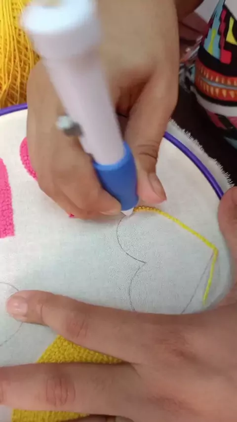 iniciando mais um trabalho 💛🩷 produção de chaveirinhos de coração ❤️ #bordadorusso #punchneedle #chaveirinhopersonalizado #agulhamagica #artesanao