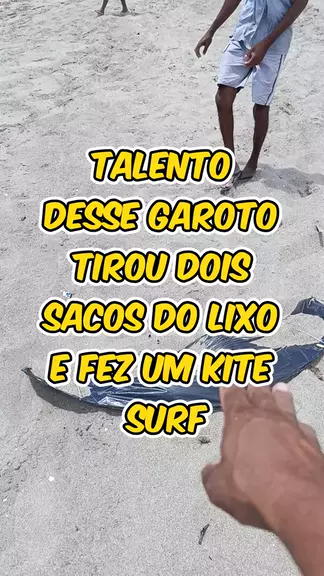 ele pegou duas sacolas plásticas e fez um kite surf artesanal olha como ficou