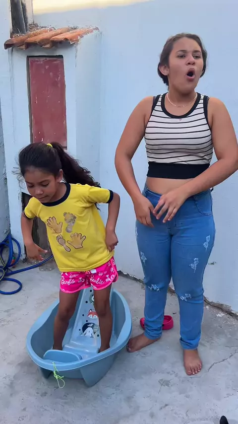 Quando eu jogo minha irmã chata na piscina