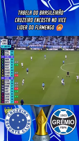 TABELA DO BRASILEIRÃO CRUZEIRO ENCOSTA NO VICE LIDER DO FLAMENGO 🙆#brasileirão2025 #rodada32 #CruzeiroXGremio #kwaiesportes #esporteviral