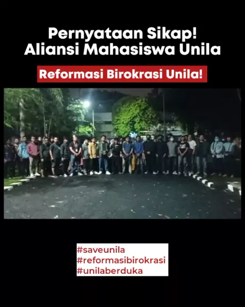 Pernyataan Aliansi Mahasiswa Unila ALERTA !! ALERTA !! HIDUP MAHASISWA !! Hidup Rakyat Indonesia Hidup Perempuan Indonesia ! Dengan telah dilaksanakan diskusi terbuka pada hari ini tanggal 21 Agustus 2022 telah terbentuk dan disepakati "Aliansi Mahasiswa Unila " untuk menindaklanjuti serta mengawal proses penegakan #Unila #beranda