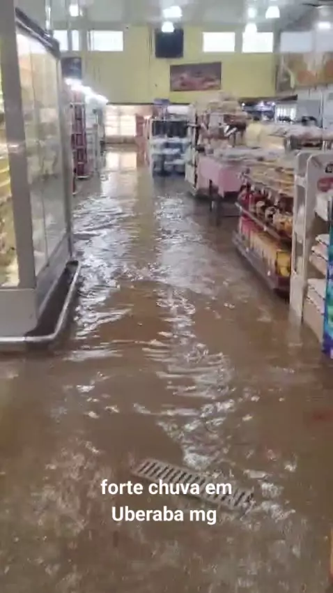forte chuva em Uberaba mg alagando ruas supermercados #noticia