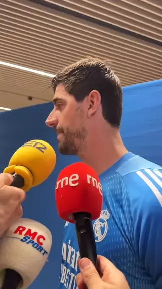 L’arrivée de Thibaut Courtois en zone mixte après la victoire 3-0 du Real Madrid face à Manchester City ! #realmadrid #football #halamadrid
