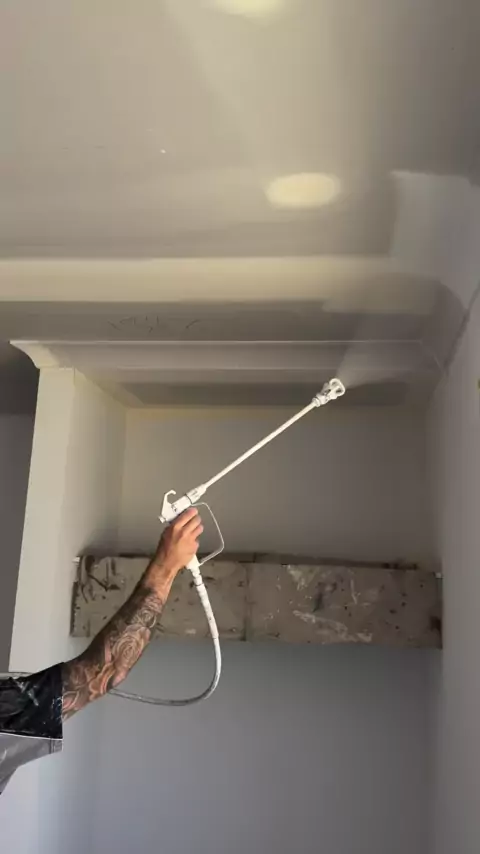 Pintura com compressor, acabamento perfeito e execução muito mais rápida #viraliza #reforma #decoraçao #pintura #obra
