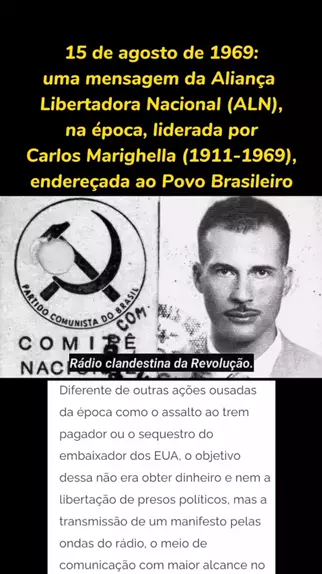 História do Brasil: uma mensagem de Carlos Marighella, da Aliança Libertadora Nacional (ALN) para o Brasil, 15 de agosto de 1969 #historiadobrasil #CarlosMarighella