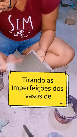 Tirando as imperfeições dos vasos de cimento.