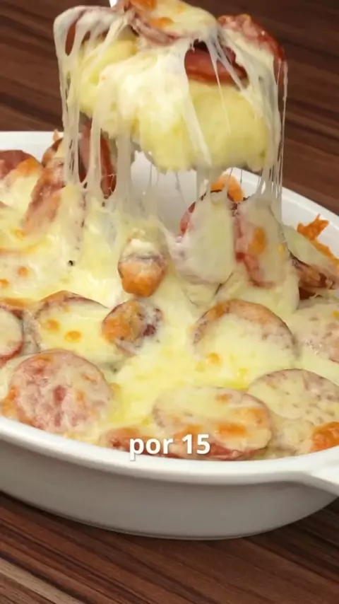 ESCONDIDINHO DE CALABRESA INGREDIENTES PARA O PURÊ 6 BATATAS 100 ML DE LEITE INTEGRAL SAL 1 COLHER DE SOPA DE MANTEIGA RECHEIO 2 CALABRESA, FRITAS CORTADAS EM RODELAS QUEIJO MUSSARELA PARA FINALIZAR FORNO PRÉ AQUECIDO A 180 GRAUS POR 15 MINUTOS PREPARO NO VÍDEO. #Escondidinho #receita #linguiça #culinária #facildefazer