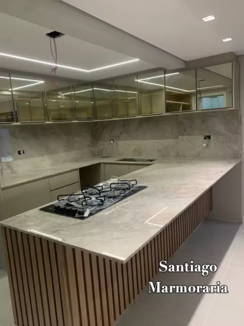 Cozinha Mármore Branco Paraná Kronos, ficou linda demais 😍