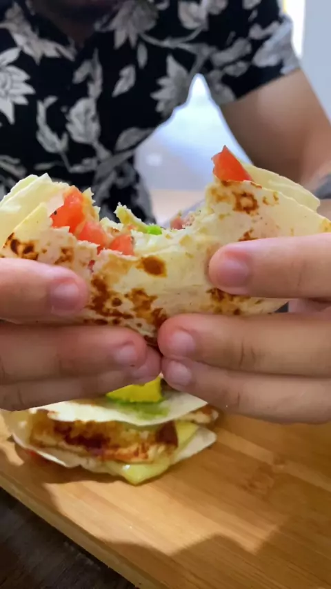 Lanche de tortilha! 🤤🌮 DELICIOSO E SAUDÁVEL Vem comigo 🏃🏻♂️ #tortilha #lanche #receitasimples #Desafiepara10kVis