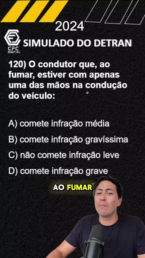 QUESTÃO DE PROVA DETRAN SOBRE O CONDUTOR FUMANTE #quiz #pergunta #prova #conhecimento #dica