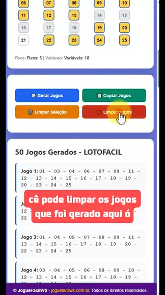Gerador de jogos pra loterias #joguefacilws #loteria