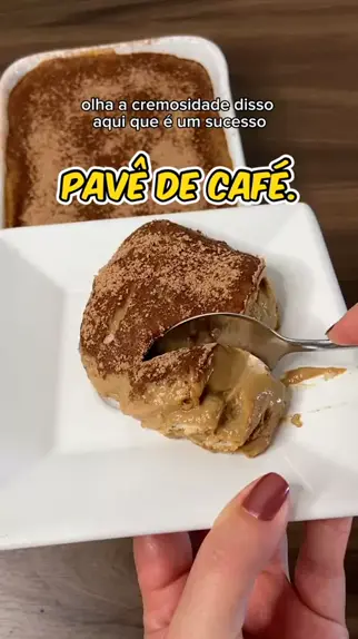 Pavê de café. Ingredientes: 3 colheres de sopa de café solúvel 2 colheres de sopa de amido de milho 500 ml de leite 1 lata de leite condensado 1 caixinha de creme de leite 1 gema 300 gramas de biscoito maisena Chocolate em pó para polvilhar. #pavê #café #familiasecundaria #KwaiFamilia #MelhorVideo
