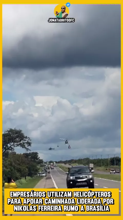 Empresários utilizam helicópteros para apoiar caminhada liderada por Nikolas Ferreira rumo a Brasília