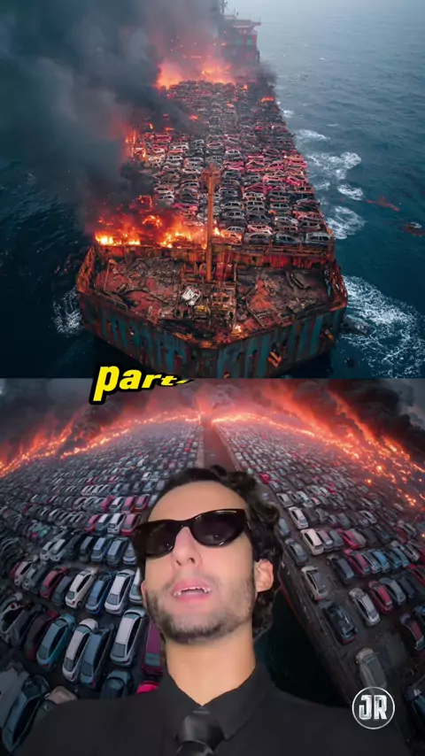 🚢🔥 #navio #carros #Fogo #pacifico #carga