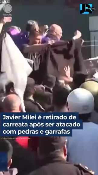 A confusão aconteceu enquanto Milei liderava um evento de campanha. As imagens mostram o presidente acenando em uma caminhonete quando o tumulto começa. Ninguém ficou ferido. #JornalDaRecord #JR24H