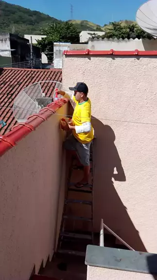 #construção #obra Ladrilheiro pintando a telha do muro