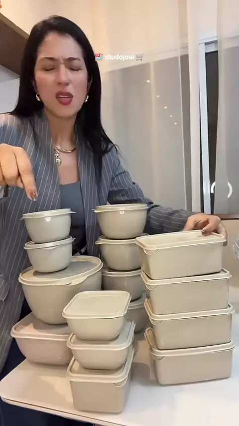 🏪 Kit 15 potes herméticos de plástico com tampa 🛍 #kwai #sale #dtudojosi