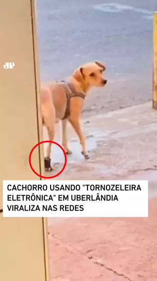 Um vídeo de um cachorro 'caramelo' usando uma 'tornozeleira eletrônica' viralizou nas redes sociais. A situação, que inicialmente assustou os moradores de Uberlândia, Minas Gerais, não passa de uma brincadeira dos tutores. #tornozeleira #doguinho