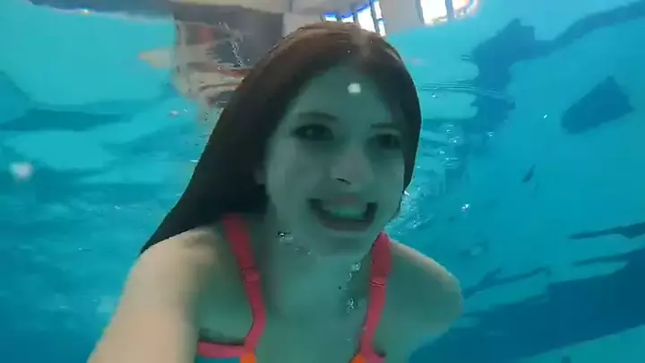 Dando um 'oi' direto do fundo da piscina! 🐳💦 Nada melhor do que um mergulho pra renovar as energias. Quem aí também ama uma água? 💙 #Pool #Swimming #Julinha #Refrescando