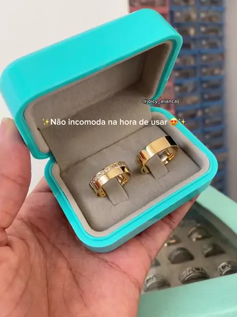 Par de alianças 6mm Banhadas a ouro 18k crevejada pedra e chanfrada + Gravação + Solitário (COD-17 + 106) #aliança #anel