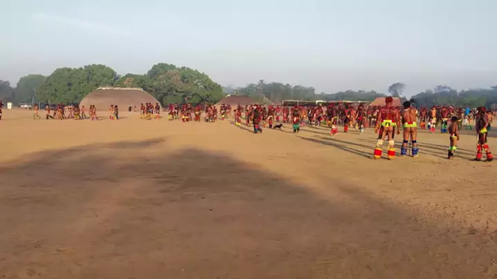 desfile de cada etnia na aldeia Nafukua no alto Xingu....