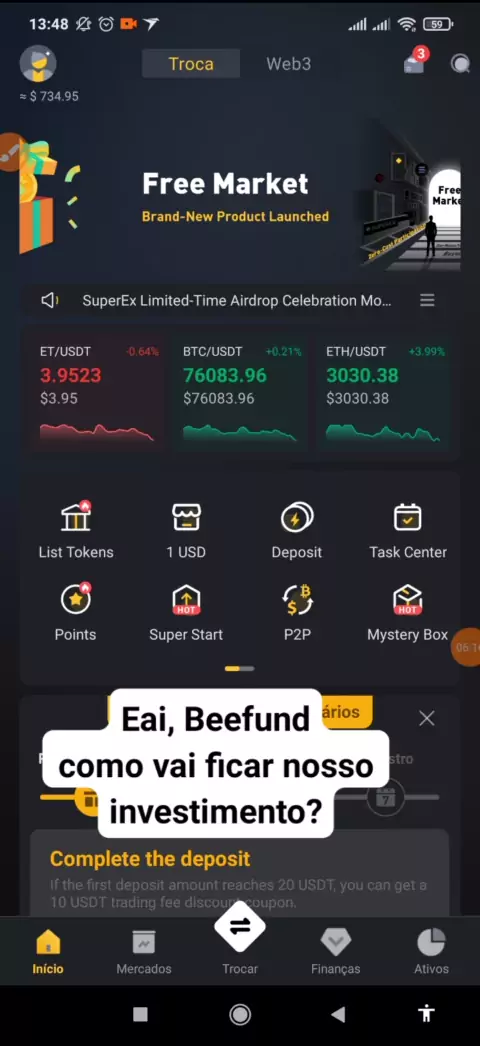 e você, como tá seu saldo na Superex? comenta aqui pra min saber? #beefund # #superex #gtex #mundocripto #investidores