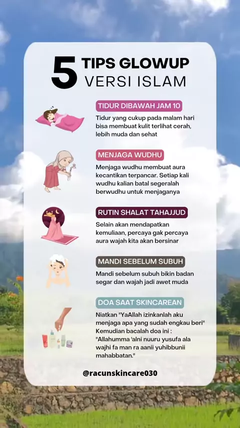 Tips glow up versi islam ๐ #tipsglowup #tipsandtricks #tips #zonacantik #skincare #wajahglowing #hidupsehat #glowupchallenge #glowing #tipskulitsehat #versiislami #racunskincare030