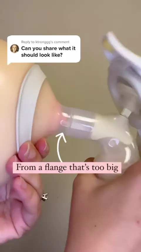 Respondendo ao tamanho usado no primeiro clipe é um flange de 24 mm, o que normalmente vem incluído com sua bomba de leite. Isso não significa que é o seu tamanho ✨ algum palpite sobre o tamanho que está sendo usado no segundo clipe? Uma flange bem equipada permite o movimento do mamilo dentro do túnel com pouca ou nenhuma aréola sendo puxada. ✨ compromissos de dimensionamento de flange disponíveis no meu site - Baremotherhoodshop.com # pumpingmom # exclusivepumping # milkmaker # pumplife # new...