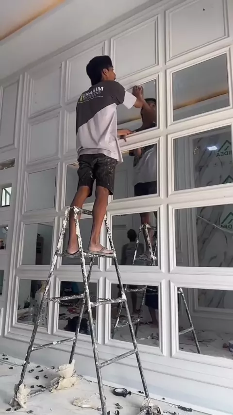 tetep kesan praktis cermin mininalis bingkai wallmoulding tetep panggah mewah... elegan #penyekatruangan #bacdrop #interiorkamar #penyekatruanganminimalis #pilkada #ridwankamil #kamarmewah #walk in closet with dressing table #сѓисѓџviral #karawang # #plafonpvcminimalis #wallbatten #eksterior #kamarset #jasabangunrumah #bangunumah