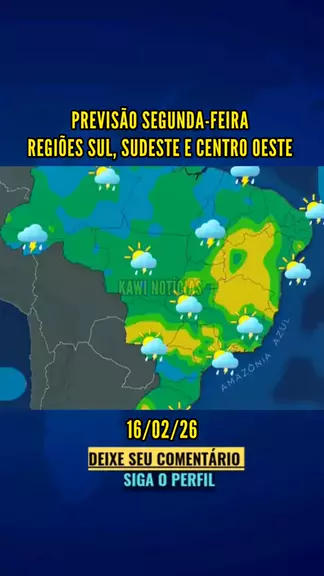 PREVISÃO SEGUNDA-FEIRA REGIÕES SUL, SUDESTE E CENTRO OESTE 16/02/26. #ultimasnoticias #previsaodotempo #chuva