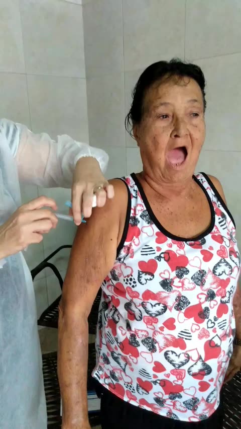 Minha mãe tomando a primeira dose da vacina contra a Covid-19