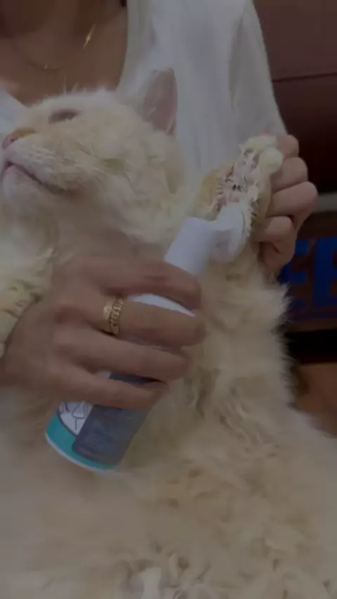 Mandiin kucing tanpa pakai air cuma 3 menit aja? #groomingkucing #shampookucing #groominginstan
