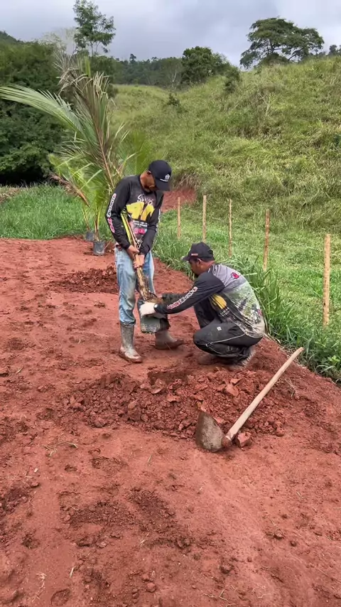 Plantando coco ao redor do tanque