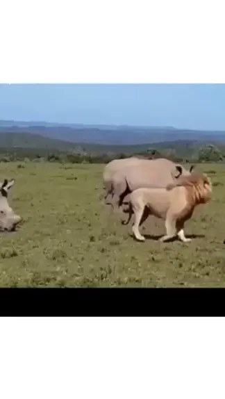leões observando os rinocerontes