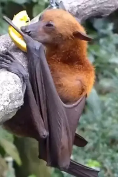 morcego grande comendo fruta.
