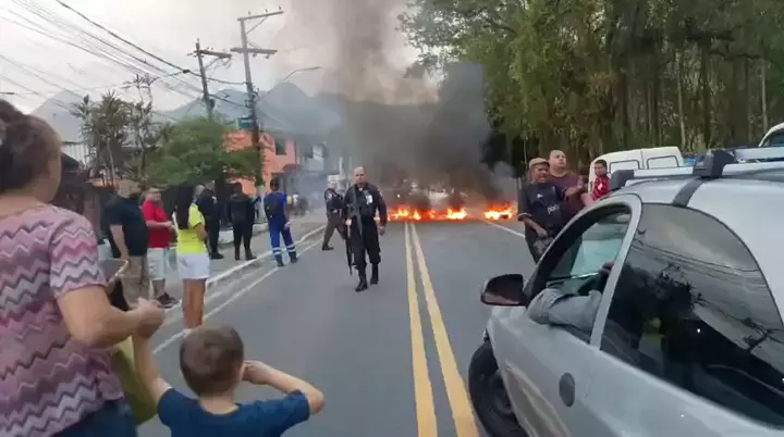 Moradores fecham a estrada Addam Brummer na Localidade do BNH de Santo Aleixo (Magé) em protesto pela reforma do poliesportivo.