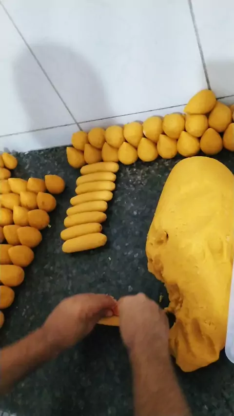 Produção de enroladinho de salsicha.
