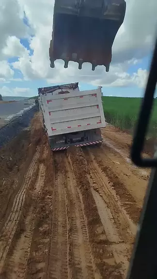Escavadeira desatolando caçamba #Maquinas #caçamba #caminhao #escavadeira #terraplenagem