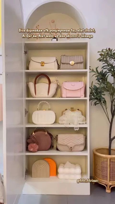 Sejak pakai rak hijab & tas ini Kamar aku jd lebih rapi & tertata Ini lemari Ameena Bahan dari kayu mahoni mix plywood Finishing duco Bisa digunakan utk penyimpanan tas, alat shalat, Al Qur'an, Alat make up dan aksesoris lainnya Bagian belakang terdapat rak penyimpanan hijab Yg luas & muat banyak Terdapat cermin dibagian depan bisa sekalian ootd didepan cermin Multifungsi bgt kan Tinggi 160 & 180 cm Bisa Custom warna Yg mau samaan bisa pre order barangnya di @woodcraftbybrie #rakhijab #lema...