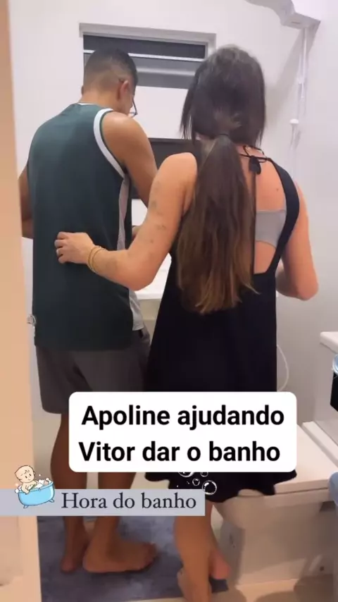 Apoline ajuda Vitor a dar o banho #paisefilhos #FamiliaÉTudo #paternidade #midia #fofoca