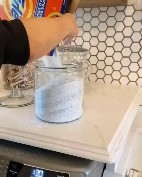 Organização da Lavanderia Produtos organizados em potes de vidro, amei o resultado final e vocês? 🥰 Vídeo não autoral. #decor #decoracao #lavanderia