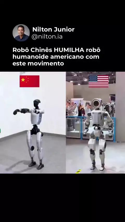 O FIM DA SUPERIORIDADE AMERICANA? Você não vai acreditar no que aconteceu! Enquanto os EUA dominavam os céus, a China acaba de dominar a física. O novo humanoide chinês não apenas deu um mortal para trás, ele fez a engenharia americana parecer brinquedo de criança. É o início da Era das Máquinas ou o aviso final para o Ocidente? Siga @nilton.ia 🎥 Boston Dynamics & Unitree #ia #ai #inteligenciaartificial #inteligenceartificial #artificialinteligence