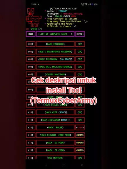 • apt update && apt upgrade • apt install git • git clone https://github.com/Err0r-ICA/TermuxCyberArmy • cd TermuxCyberArmy • python2 TCA #hack #hacking #tool #fyp #cyber