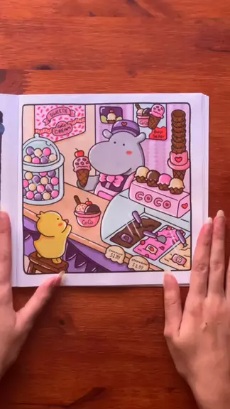 Colorindo a página da sorveteria em Cozy Friends 🍨🍦 Efeitos: textura de madeira, reflexo no vidro, luz e sombra Marcadores a base de álcool @Ohuhuart e @Artools Caneta Posca @uni Brasil Livro Cozy Friends @cocowyocoloring Efeito de vidro @Cores do Lucas ® #ohuhu #colorir #coloring #livrodecolorir #cozyfriends
