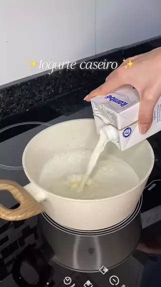 Iogurte caseiro 1 litro de leite (uso integral) 1 copinho de iogurte natural 3 colheres de leite em pó (opcional) Coloque o leite em uma panela, ligue o fogo e deixe aquecer. Quando você conseguir deixar o dedo no leite por 10 segundos sem se queimar, está na hora de colocar o leite em pó e o iogurte natural. Mexa bem até que tudo fique muito bem misturado. Agora coloque em um pote com tampa que vede bem, enrola um pano de prato e deixe dentro do forno desligado, por cerca de 8 a 10 hor