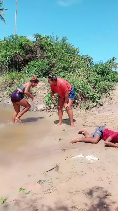 peguei ela com o jacaré de mentira 😂