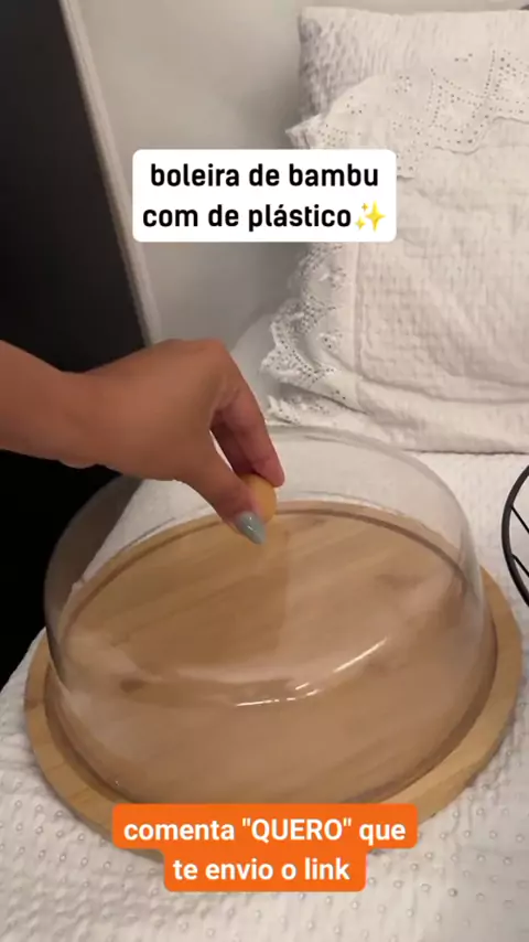 boleira de bambu com tampa de plástico ✨ #boleira #boleiradebambu #boleiradevidro